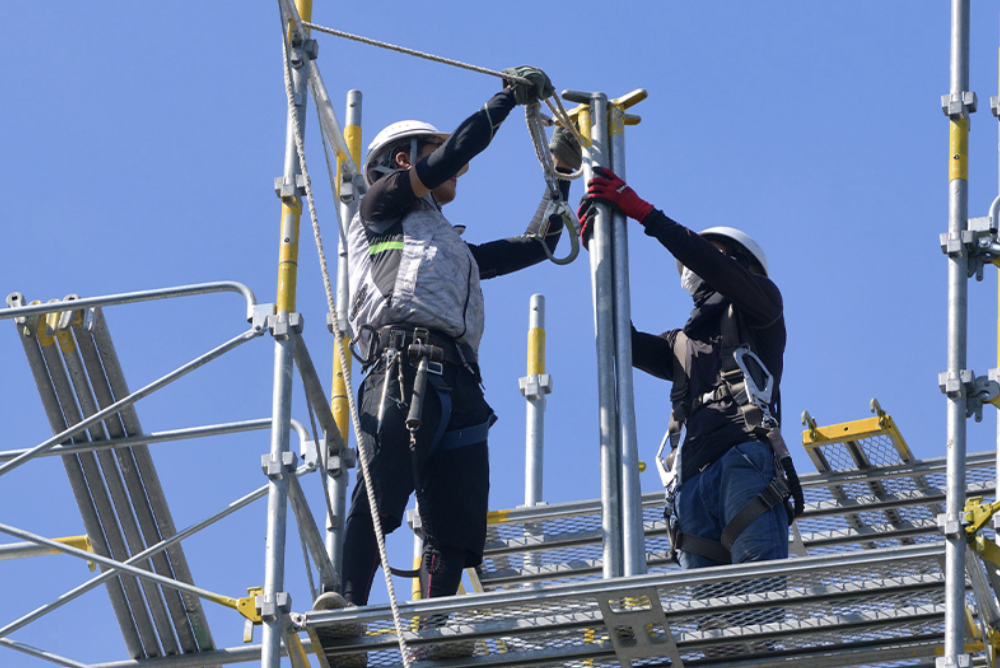 現場での長年の経験を活かし、迅速かつ丁寧な作業を心がけ、すべての現場関係者の皆様に安心してご利用いただける足場を提供することが私たちの使命です。