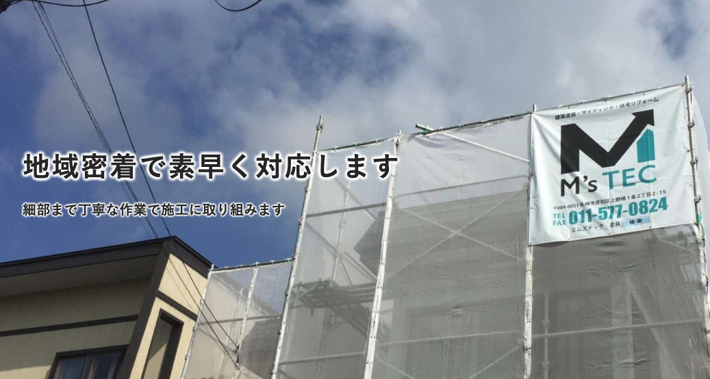 札幌 外壁塗装をお探しなら、『M’sTEC』へ一度お気軽にご相談されてみてはいかがでしょうか。施工した箇所の定期点検やアフターフォローまで責任を持って対応してくれ、お客様からの信頼がある会社ですよ。